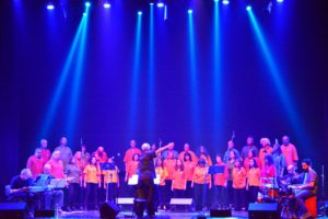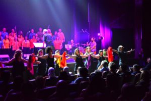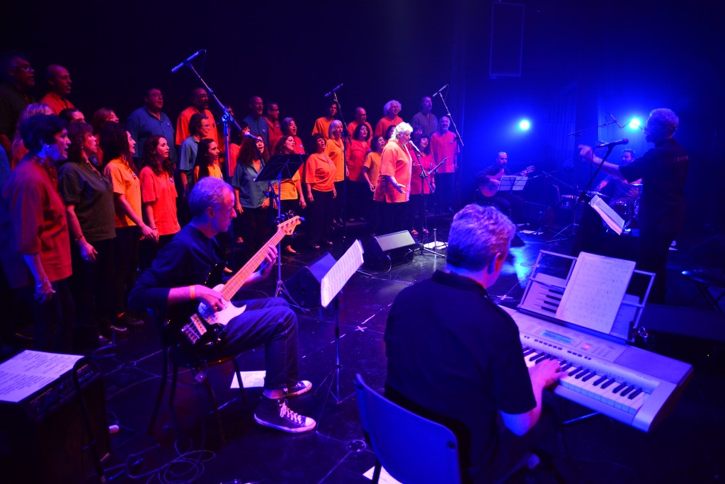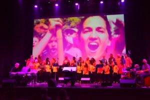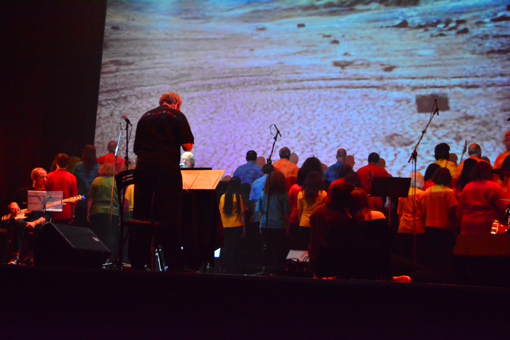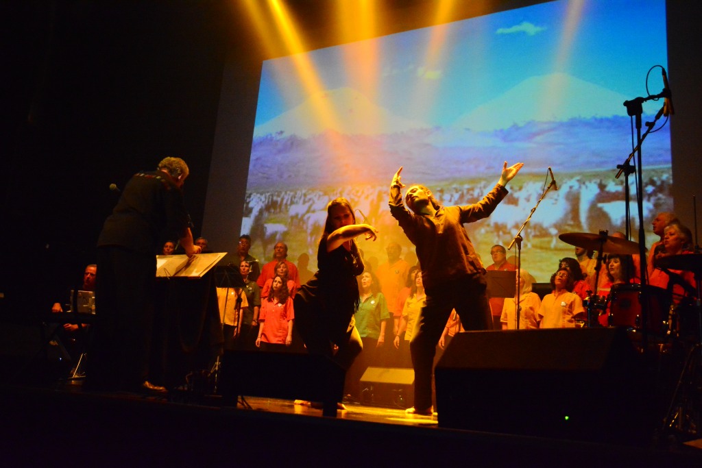 La estética coral del CUMPA, acompañada por un grupo instrumental de teclado, bajo, guitarra y percusión, sumada a elementos escénicos como el ballet y las herramientas audiovisuales, terminan de conformar un espectáculo performático que vuelve a situarnos en la posibilidad de construcción de Latinoamérica como una Patria Grande.