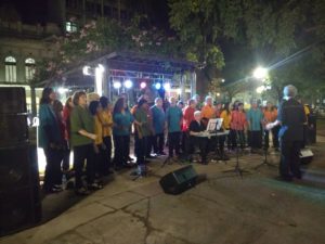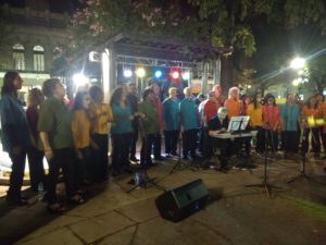 Con un público atento y emocionado, el CUMPA abrió las actividades de la Vigilia cantando algunas canciones de su espectáculo “AMERICANOS”, que rescata la memoria de las luchas latinoamericanas de distintas épocas. Sonó también la emblemática canción “Blancos Pañuelos”, que el M° Javier Zentner compusiera para las Madres de Plaza de Mayo en 1982.