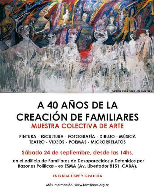 Este sábado 24 de septiembre el Coro CUMPA participará de una Muestra Colectiva de Arte que homenajea el 40° Aniversario de la creación de Familiares de Desaparecidos y Detenidos por Razones Políticas.